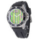 このメンズウォッチは、黄色、シンプル緑、紫の縦型のストライプデザインマルディグラを持っている。