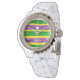 マルディグラスハンド色彩の鮮やかパープルグリーン金ゴールドストライプ 腕時計