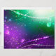 明るい紫と緑の背景に光沢のある紙吹雪。フェスティバルマルディグラ。