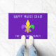 マルディグラグリーンイエローパープルファット火曜日デコールルイジアナカーニバルパーティーパープルドアマット、フルーアデリスとカスタム文字