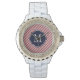 マルーンと白のパタストライプのーン 腕時計