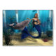 ブルーの描写ファンタジー海背景に可愛いマーメイドとドルフィンの3Dデジタル