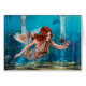 青いファンタジー海の背景にユリの花を持つかわいい人魚