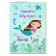 この赤ちゃんシャワーサンキューカードは、紫色のグリッターと可愛いマーメイドデザインフェイクを備えている。カード内の特別なメッセージと同様に、前面に名前を付けてカスタマイズできる。このカードはコレクションの一部であり、他の一致するベビーシャワー製品の範囲を含む。お店のコレクションのページを見てフルレンジをご覧ください。