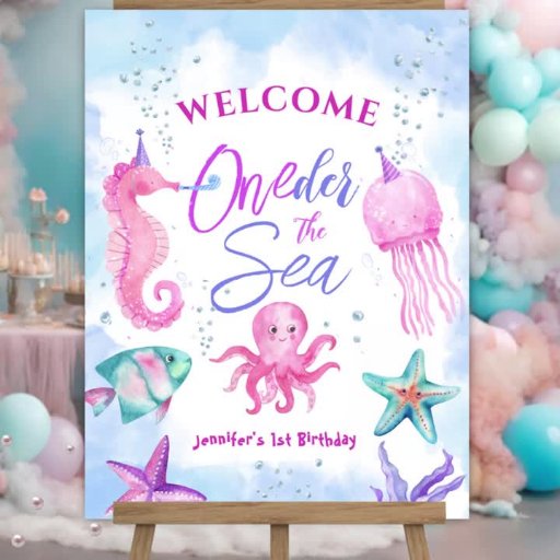 マーメイド1歳の誕生日「スプラッシュ」ピンクパープル 招待状