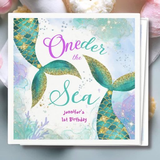 Oneder The Sea! Teal Mermaid Girls 1st Birthday デザイン: H-Art Studio Design