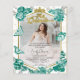 Gilded Mis Quince Tiara Geometric Frameの紹介。キンセアニラのお祝いに最適な素晴らし予算の写真招待状。このエレガントデザインはエメラルド鮮やかグリーンフローラと蝶モチーフを備え、特別な日のためにパーソナライズされた簡単を作る。Designed by CaMiDesignsで作気に成されたこの招待は、この大切なマイルストーンの本質を見事に捉えている。注文、出荷、製品情報などのお手伝いについては、Zazzleカスタマ連絡ーに直接お問い合わせ気にください。