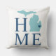 ウェルカムスタイリッシュピローは、「ホーム」文字とミシガン州州マップを備えたタイポグラフィデザインを備えている。ネイビーブルーハートシティマーカーは、あなたが住んでいる都市の上に配置することができる。ネイビー、ブルー、アクアブルー、ホワイトカラー。枕の後ろストライプに横着の模様が着る。