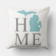 ウェルカムスタイリッシュピローは、「ホーム」文字とミシガン州州マップを備えたタイポグラフィデザインを備えている。ハート市のマーカーは、を介して住んでいる都市の上に配置することがでカスタマイズきます。木炭グレー、アクアブルー、白。枕の後ろストライプに横着の模様が着る。