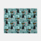抽象芸術ミッドカラフルセンチュリーのスタイルパターンと黒猫、黒星とカラフル(青、白、ピンク)キューブすべての猫好き、猫のママと猫のパパのためのターコイズの背景の装飾。