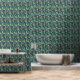 ミッドセンチュリーモダンティール(緑がかった色)&コーラルパターン 壁紙