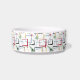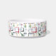 赤、緑、青、黄モダン色、黒の色の抽象芸術広場、スターバスト、ブーメラン、赤フォントのペットの名前を特徴とする中世紀の素敵なペットボウルカジュアル。ペットの時間におもしろい要素を食べ物を与え追加する!