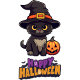 レトロ黒猫の三日月 – クラシックハロウィーンスタイル招待状、ティー&プリント。