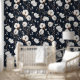 白い花と美しいミッドナイトブルーの壁紙デザイン。この紙はかわいらしあなたの家の任意の部屋に最適である