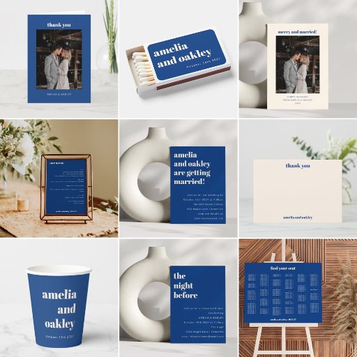 ミニマはっきりしたリストボホフランスのブルーとクリーム秋レトロシンプルカスタムウェディングサンキューカード