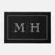 ミニマエレガントリスト白黒モノグラムDoormat。薄い白と開いた顔フォントのカップルのイニシャル縁ど。