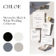 「Chloe」結婚式招待状・コレクションと連携するように設計。詳細を変更すクリックるには、「詳細」。文字を移動したり、サイズ、フォント、色を変更するには、「デザインツールを使クリック用して編集」を使用する。このページのコレクションリンクを表示して、この美しいデザインで一致するすべてのアイテムを表示する