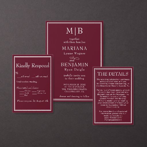 モダンの紙結婚プレートあなたの結婚式のレセプション、リハーサルのディナーとミニマルなブルゴーニュ縁どテーマのブライダルシャワー。