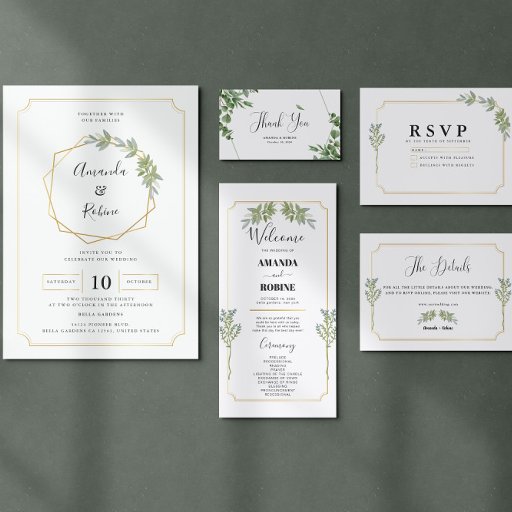 ミニマリストの白いフレーム結婚金ゴールド 招待状