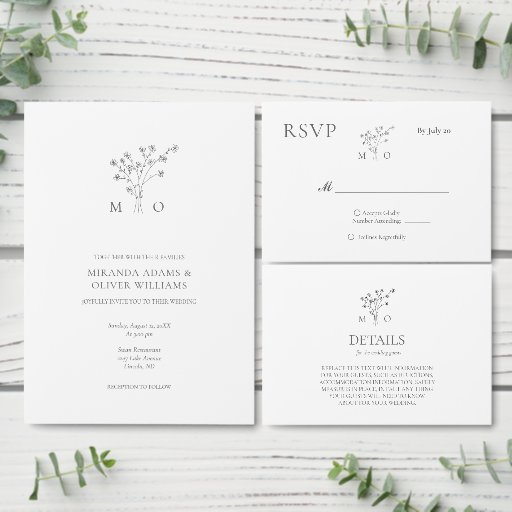 ミニマルな花ブーケグレー結婚式招待状 招待状