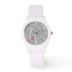 女子のためのスポーティなバレーボールをテーマにしたこの時計シンプルは、灰色の背景で互いにわずかにオフセットされているのミニマルなスタイルバレーボールグラフィックのペアを特徴としカスタマイズて、彼女のモノグラムはピンクで、katz_d_zynesによって