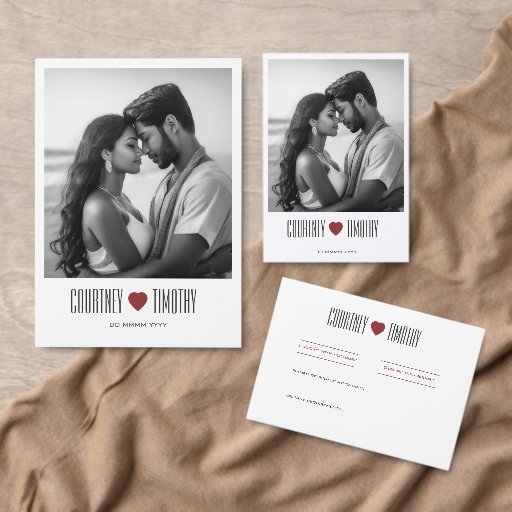 この招待結婚にスタイルしてエレガントお知らせミニマルする。このデザインは白モダンい鮮明な背景にクリーンなフォントを搭載し、シンプルさと洗練に焦点を当てている。カップルの名前は微妙な赤いハートで区切られ、日付と時刻は赤でエレガントに強調表示されている。時代を超越した控えめな表情を味わうカップルに最適。このミニマル結婚式招待状は背中に赤く、カップルの名前はハートで区切られてシンプルいる。