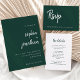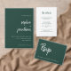 これらのエレガントミニマル結婚リストのゲスト情報カードはエメラルドの緑のスクリプトタイポグラフィとクリーンなsans serif文字を備えモダン、あなたが好きなデザインとシンプルのための白い背景にスタイリッシュ。これらのカードは、運転方向、披露宴または交通情報、ホテルまたは宿泊施設の情報、およびゲストが知る必要があるその他の結婚詳細に使用できる。