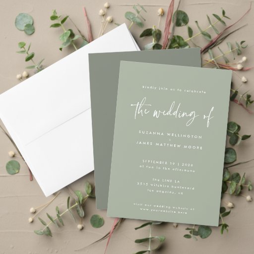 Neutral Sage Greenミニマル手書きスクリプトウェディングRSVPカードとQRコードとURLを使用しカスタムて、ゲストの簡単に対する応答結婚を行う。デザインツールを使用して、背景または文字の色を変更したり、デザイン要素の配置を調整する。一致する結婚式招待状は、この結婚文房具コレクション内で利用可能。