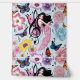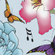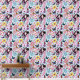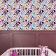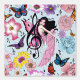 ピンク色の可愛い小さな妖精で、音楽のノート、花や蝶が青を背景に