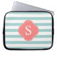 ミントとコーラルのストライプモノグラム ラップトップスリーブ