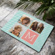 ミントとコーラルフォトコラージュとモノグラムカスタムのコラージュ ドアマット