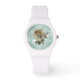 ミント緑のアイボリーバラを搭載した美しいスポーティなホワイトシリコンウォッチ真珠のハートとラインストーンのデザイン – みすぼらしいシックなスタイル – 優しく廃棄された真珠のハートを除く画像