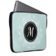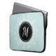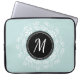 トレンディーラップトップスリーブミントブルーフローラリースとモノグラムパーソナライズされた。