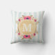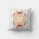 装飾用クッションはミントストライプのパターン、水色ピンクの花と金ゴールドホイルフェイクモノグラムカスタム付き。