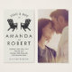 屋外またはコテージの国の駅とdoeパーティーのための完璧なチケットデザイン。このデザインは、クリームの背景に2つのグレーのアディロンドバック椅子のシルエットを特徴としている。イベントの詳細とカップルの写真の逆のスペースでパーソナライズする十分なスペース(または空白のままにする)。その他の色を使用できる