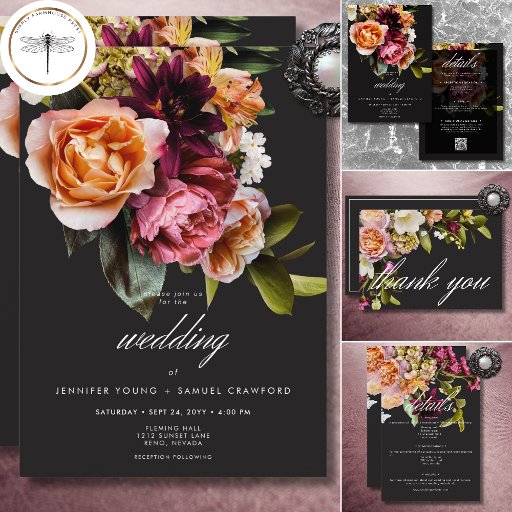 ムーディエレガントー・ブルゴーニュ&ピンク・フローラズ結婚ーズ アクリル招待状