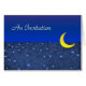 暗いカスタム青空に向かってエレガント三日月を持つ星の夕べの夜のヴィンテージアートと折り畳ま白熱[赤熱]光を放つれた招待。クリックカスタマイズは、フォントの変更、サイズ変更、文字の追加または削除などを行う。