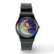 ムーンエンジェルインブルー金ゴールド黄色のキラキラ 腕時計
