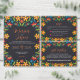 メキシコのフローラカラフル植物花結婚式 プログラムデザインは、深いの炭縁ど黒の背景に対して対称のフローラを示し、コントラストを作成すはっきりしたるエレガント。上と下の端は黄色鮮やか、赤、オレンジ、青の花を特徴とし、緑豊かな緑の離れ花を付け、小さな赤い実がアクセントになって視覚的な関心を高めた。広くて空の中央宇宙は、文字やイベント詳細を追加するのに最適なクリーンな領域を提供し保、フローラフレームは印象的な装飾要素として華美。