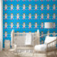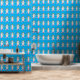 This awesome patterned wallpaper features a digital art image of a cute axolotl, a Mexican Salamander, wearing a sombrero and shaking maracas. The axolotl is pale pink with bright pink feathery gills and a bright pink tail. It has huge eyes and a smile on its face. The sombrero is yellow with a green cactus in the middle. The cactus is surrounded by chilies and Mexican sunflowers, also called Tithonia. The Maracas are yellow with red and green flowers and wavy lines on them.