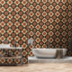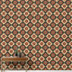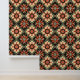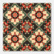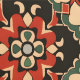 この作品はプレゼント的なフローラと幾何学的なモチーフを特徴とする複雑なメダリオンパターンを描いている。デザインは詳細に富み、暖かい赤、柔らかいクリーム、深いの黒い背景に対してミュートされた緑の調和のとれたカラーパレットで連動する形状を示す。要素の繰り返しバランスの取れた配置は、クラシックタイルのデザインや装飾的なアートワークを連想させる秩序と優雅さの感覚を作り出す。色と複雑なパターはっきりしたンの組み合わせは、全体のコンポジションに深さと視覚的な興味を追加する。