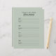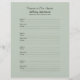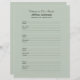 この8.5インチx 11インチのバカスタマイズインダーフィラーページは、黒いレタリングと薄い灰色の緑でパーソナライズされた、バインダースタイルメモリアル本またはゲストブックを充填するのに最適である。このノートブックのフィラー紙は、個人用に設定する簡単で表現す。ユーザー独自の気持ち、名前の変更、日付の削除または変更を行います。ページは事前にフォーマットされており、参加者は連絡サインイン時に情報とメッセージを追加でき、ページごとに4つの名前を付けることができます。バインダーに合うように穴を開ける必要がある。All Rights Reserved © 2014 Alan & Marcia Socolik