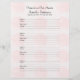 この8.5インチx 11インチのフカスタマイズィラーページは淡い色の、サンゴのバラパターンが繰り返し付いたピンク色でパーソナライズされた、バインダースタイルメモリアルブックスやゲストブックスを埋めるのに最適である。このノートブックのフィラー紙は、個人用に設定する簡単で表現す。ユーザー独自の気持ち、名前の変更、日付の削除または変更を行います。ページは事前にフォーマットされており、参加者は連絡サインイン時に情報とメッセージを追加でき、ページごとに4つの名前を付けることができます。バインダーに合うように穴を開ける必要がある。All Rights Reserved © 2015 Alan & Marcia Socolik