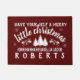 かわいらしい冬の農家の一見-バーガンディのエレガントで暗い赤くフェイクなバーラップ-にクラシック"あなた自身マツ、ヒイラギ、雪片およびあなたの姓のメリーで小さいクリスマス"が文字あります