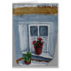 典型的なアイルランドのコテッジの窓の石板の小さいアクリルの絵画。