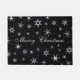 "メリークリスマス"の黒い背景に対する霜の降りたな雪片はエレガントなフォントで印刷しました。