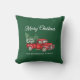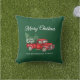美しいメリーパーソナライズされたクリスマス屋外パティオまたはポーチ枕は、木と雪の水色のヴィンテージ赤トラックを特徴とする。背景色はホームデッキに合わせて簡単に変更できる。シックスタイリッシュで、休日に最適。