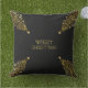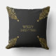 メリークリスマスツリースタークリスマスツリーブラックバックグラウンド金ゴールド光沢のあるシックな枕を見る