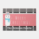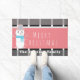 メリークリスマスピンクかわいい雪だるまの家族名 ドアマット
