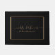 黒いエレガント背景に金色の台本が描かれたメリー・クリスマス・ドアマット。お客様の名前または文字でカスタマイズ